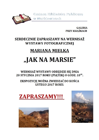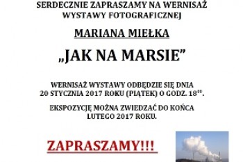 W dniu 20.01.2017 r. odbył się wernisaż wystawy Mariana Miełka zatytułowany "Jak na Marsie".